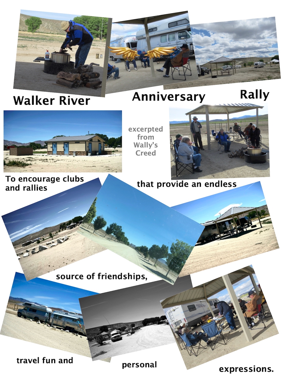 These are the photos that Don Williams, during his tenure as editor of the SNU newsletter used to promote and highlight activities and events. Some were originally published as individual photos and some were published as collages. Not all photos in the newsletters are included in these collages. Don says “All capture dates have been edited to reflect when they were created or used and are in the file name format. You will note that some include ‘teaser' in the title. Those were teaser collages to create interest in an upcoming rally or luncheon. Those file names without ’teaser’ in them are collages of the actual event being reported in a later Airstreamer” Note – The names of the photos indicates the subject. Some dates may not be the actual date the photo was taken - The top link is to the collage of photos. Below it is the link to the newsletter in which the collage is featured |