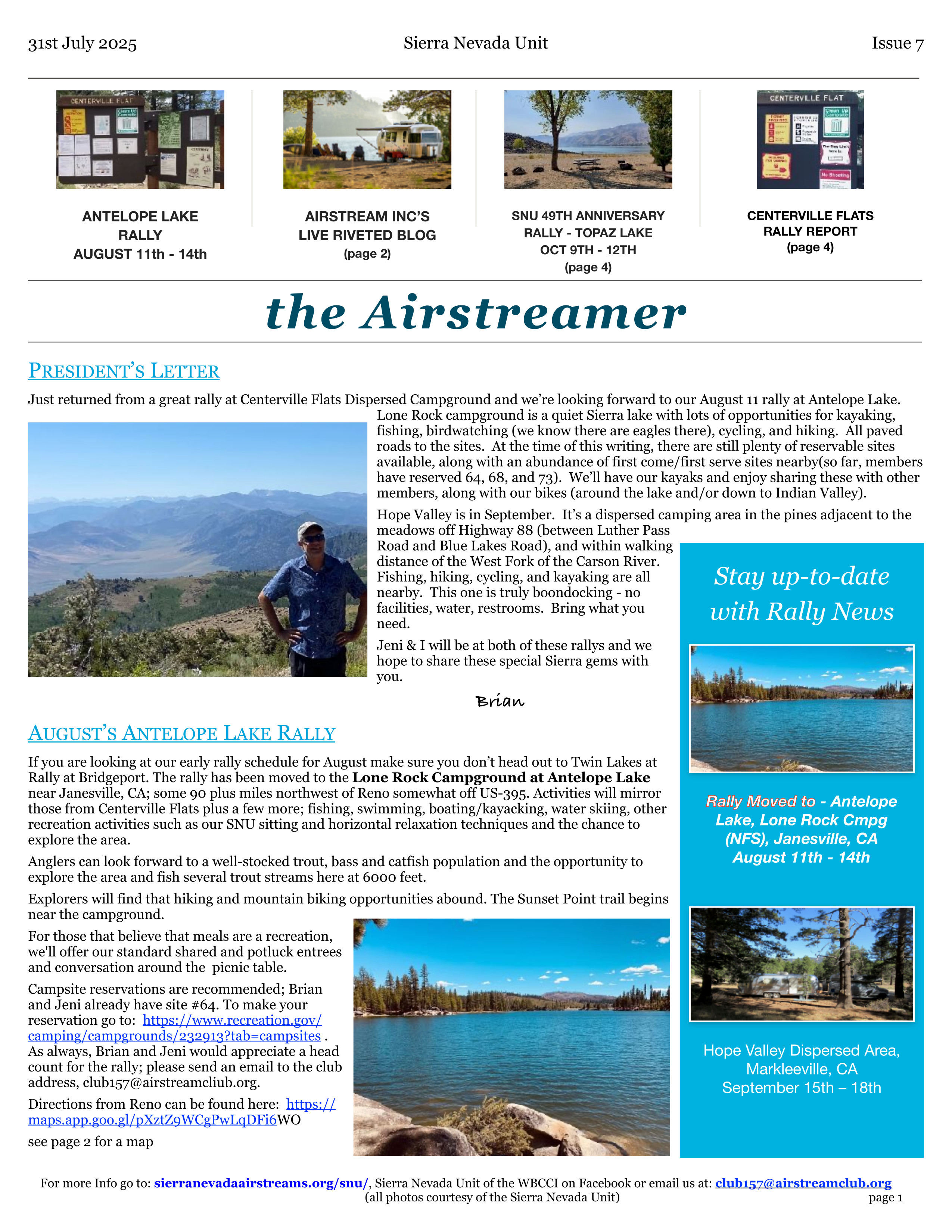 Weed Heights rally Review -|- August rally at Obsidian -|- Welcome Claudia and Frank & Diane -|- Report on New Directions -|- Airstream Activities -|- SNU business – 2017 dues, rallies & bylaws -|- Trailer Park Troubadours -|- Wheeler Kitty Kredit memories -|- Good Maps |