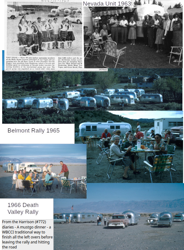 Bryan and Jo (Josephine) Harrison #772, my grandparents were charter members of the Nevada Unit. They attended several rallies with the Nevada Unit including the 1963 “Birthday Party .“ This is from an article in a Las Vegas newspaper. “About 100 auto trailers containing members of the Wally Byam Caravan converged on Las Vegas and are camping near the old Race Track in what President Norville Kupper, state president from Henderson, called a Nevada Unit birthday party in celebration of the Nevada trailer travelers becoming members of the international group last year.” The Harrisons also participated in a 1965 rally in Belmont and a 1966 rally in Death Valley.
